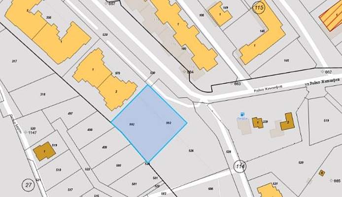 26,148% /двадесет и шест цяло и сто четиридесет и осем хилядни процента/ идеални части, равняващи се на 478 /четиристотин седемдесет и осем/ кв.м. от ПОЗЕМЛЕН ИМОТ с идентификатор №40909.114.992 /четиридесет хиляди деветстотин и девет, точка, сто и четиринадесет, точка, деветстотин деветдесет и две/ по кадастралната карта и кадастралните регистри на гр.Кърджали, с площ от 1828 /хиляда осемстотин двадесет и осем/ кв.м., образуван от поземлен имот с идентификатор №40909.114.685 с площ 1800 кв.м. и поземлен имот с идентификатор №40909.114.684 с площ 28 кв.м., одобрени със Заповед №РД-18-66/18.10.2006г. на Изпълнителния директор на Агенция по кадастъра, находящ се в град Кърджали, п.к.6600 /шест хиляди и шестстотин/, кв.Възрожденци, с трайно предназначение на територията: Урбанизирана, начин на трайно ползване: Средно застрояване /от 10м до 15м/, съгласно скица-проект №15-106488-02.02.2022г., издадена от СГКК-гр.Кърджали и съгласно проект за изменение на кадастралната карта и кадастралните регистри, внесен с вх.№01-32655-20.01.2022г., при граници на имота по КККР: поземлен имот с идентификатор №40909.114.529 и площ 11757 кв.м.; поземлен имот с идентификатор №40909.27.501 и площ 630 кв.м.; поземлен имот с идентификатор №40909.27.500 и площ 681 кв.м.; поземлен имот с идентификатор №40909.27.499 и площ 645 кв.м.; поземлен имот с идентификатор №40909.27.498 и площ 568 кв.м.; поземлен имот с идентификатор №40909.114.526 и площ 2515 кв.м.; поземлен имот с идентификатор №40909.114.978 и площ 2228 кв.м.Забележка:ПОЗЕМЛЕН ИМОТ с идентификатор №40909.114.992 е ЗАСТРОЕН! НАЧАЛНАТА ЦЕНА, ОТ КОЯТО ЩЕ ЗАПОЧНЕ НАДДАВАНЕТО, Е В РАЗМЕР НА:34 075,80 /ТРИДЕСЕТ И ЧЕТИРИ ХИЛЯДИ СЕДЕМДЕСЕТ И ПЕТ ЕВРО И ОСЕМДЕСЕТ ЦЕНТА/ ЕВРО/80 % ОТ ПАЗАРНАТА СТОЙНОСТ НА ИМОТА, ОПРЕДЕЛЕНА ОТ ЧСИ И ВЪЗ ОСНОВА НА ДАДЕНО ПИСМЕНО ЗАКЛЮЧЕНИЕ ОТ ВЕЩО ЛИЦЕ, ОТРАЗЕНО В ЗАКЛЮЧЕНИЕТО НА ЕКСПЕРТИЗАТА ЗА СТОЙНОСТТА НА НЕДВИЖИМИЯ ИМОТ/.