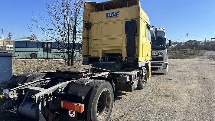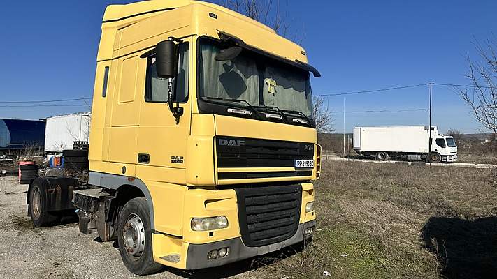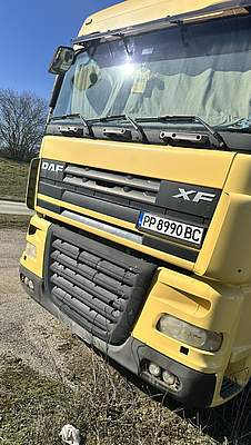 МПС,ВЛЕКАЧ, марка: ДАФ, модел: ФТ ХФ 105.410; рег. № РР8990ВС; рама № XLRTE47MS0E769906; двигaтел № MX300S1M30210; дата на първа регистрация: 10.08.2007г.; обем на двигателя: 12902 куб.см.; обороти на двигателя: 1900; мощност на двигателя: 300kw; гориво: дизел; категория: N3;маса: 7500 кг.; максимална скорост: 85 км/ч.; брой врати: 2; брой места: 1+1; брой оси: 2; волан: ляв; екологична категория: EURO 4; цвят: жълт;Забележка: В движение, без акумулатор.