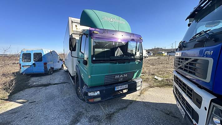 ТОВАРЕН АВТОМОБИЛ, марка: МАН, модел: Л 2000; рег. № РР9933АХ; рама № WMAL33ZZZ2Y098180; двигaтел № 8569822549P2B1; дата на първа регистрация: 07.03.2002г.; обем на двигателя: 4580 куб.см.; мощност на двигателя:132kw; обороти на двигателя: 2400; гориво: дизел; категория: N2;маса: 5600 кг.; максимална скорост: 110 км/ч.; брой врати: 2; брой места: 2+1; брой оси: 2; волан: ляв; цвят: зелен/бял;Забележка:В движение, без акумулатор.Забележка:От извършен на 09.03.2026г. оглед на вещта се установи, че липсва хладилния агрегат за охлаждане на товарния отсек.