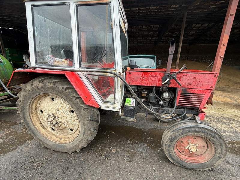 Трактор колесен ТК-60, А06334, 1293С НАЧАЛНА ТРЪЖНА ЦЕНА В РАЗМЕР НА3060.00 евро с ДДС (три хиляди и шестдесет евро), от които 510.00 евро ДДСТрактор колесен ТК-60 (инв. № А06334, сер. № 1293) - ТК-60 е стар български колесен трактор с четири задвижващи колела, произведен в периода 1980–1990-те години. Той е предназначен за леки полеви операции, транспорт и помощни работи в малки ферми и лични стопанства. Машината има дизелов двигател с мощност около 60 к.с. и проста механична трансмисия. Червен трактор с кабина, който показва видими следи от дълга употреба. Състоянието е по-лошо – боята е силно избеляла, има ръжда, гумите са износени, а интериорът изглежда стар. Въпреки възрастта си, тракторът все още може да се използва за леки задачи благодарение на простата си конструкция. Той е евтин за ремонт и поддръжка, но не е подходящ за интензивна ежедневна работа.